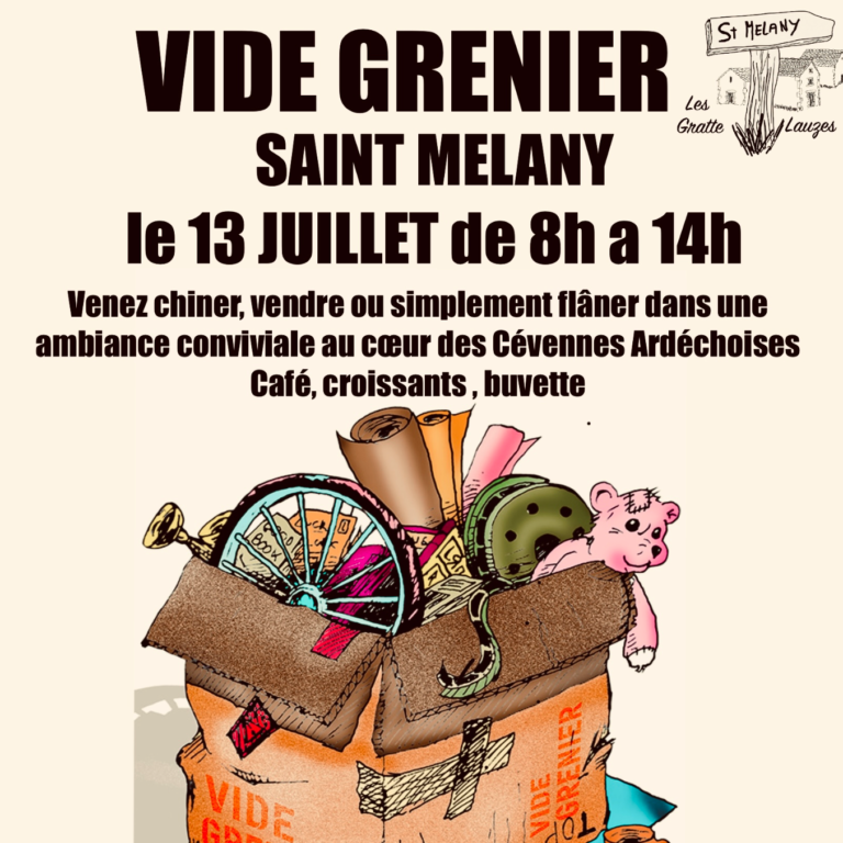 L’association des gratte lauzes de St-Mélany organise son vide grenier Nous recherchons des personnes intéressées pour venir déballer, donc si…